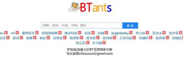 BT蚂蚁,这是一个非常大的BT资源网站,在这里你可以到大量各种类型的BT种子资源,比如热门的图片资源、小说资源、文档资源、音乐资源、电影资源等等。需要资源就直接在框中输入关键词进行,框下方还有很多网友们的热门资源~